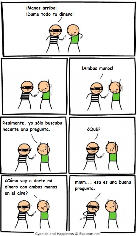 Esta vez, Cyanide and Happiness me hacen ver este gran problema… probablemente debería ser cambiado por ¡Una mano arriba! aunque no me gusta mucho…