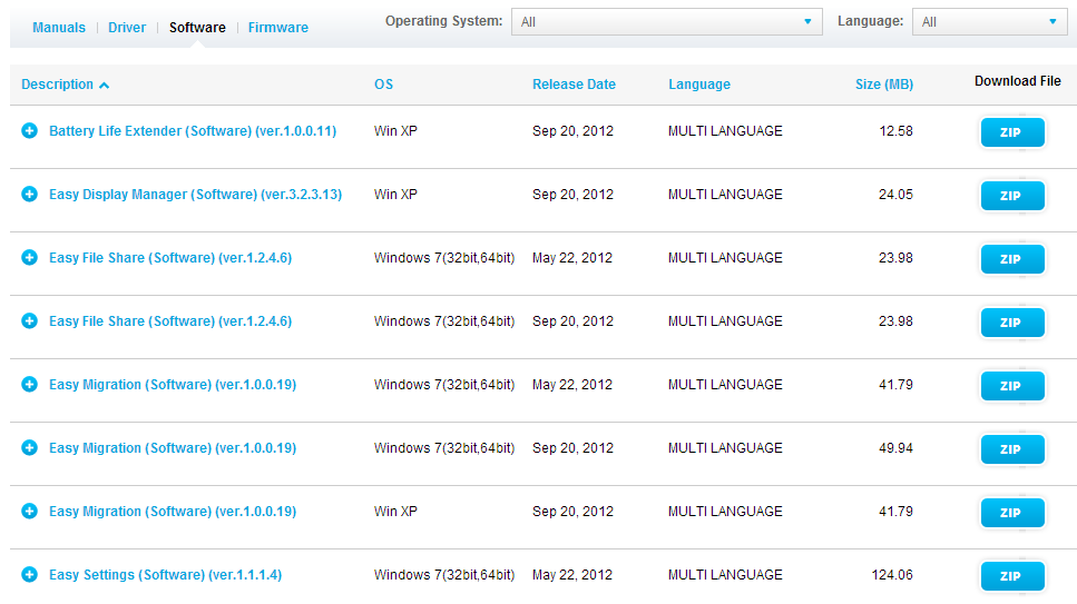 Para activar la tecla fn en un samsung np300, después de un formateo, simplemente debes descargar desde la página oficial de samsung el software llamado “Easy Display manager” teniendo cuidado con la versión del sistema operativo que eligas (windows xp, windows 7), como se puede ver en la siguiente imagen:
