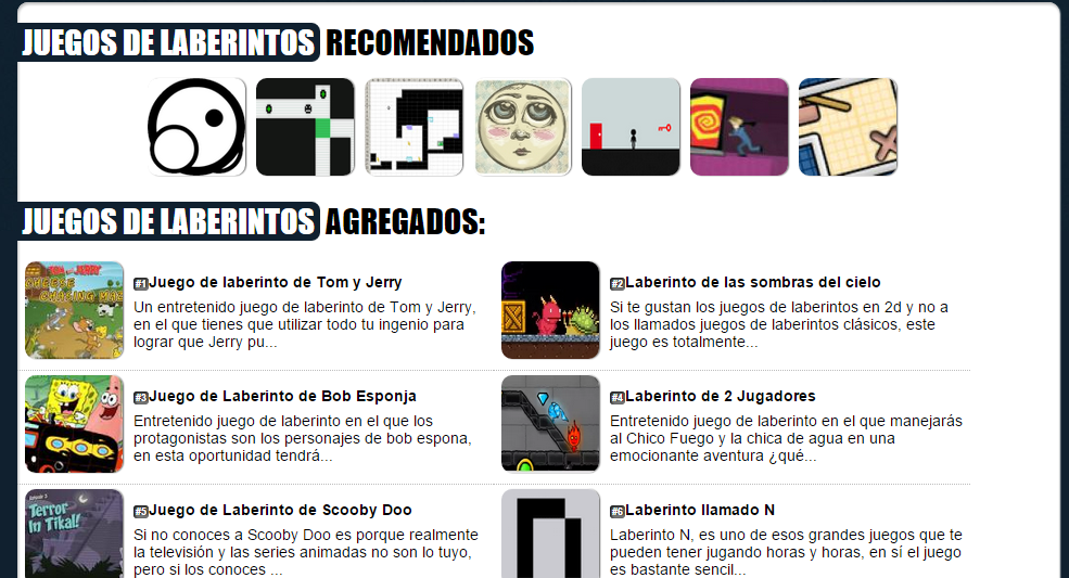 Juegos de laberintos gratis es un sitio que empecé ya hace varios años, si bien la intención en un principio de éste sitio era tener un sitio más de juegos flash, finalmente el sitio fue diseñado en un 100% por mí, además se adaptó un script muy antiguo y se mejoró bastante. Sin duda un proyecto en el que aprendí bastante y me tiene bastante contento y nostálgico ya que con éste proyecto logré aprender bastante. En actualidad se actualiza muy esporádicamente ya que logró llegar a tener una gran cantidad de juegos, si bien el sitio de laberintos todavía puede ser bastante mejorado, no sé si seguiré desarrollándolo.