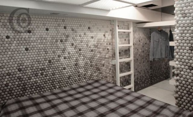 Este gran departamento de la ciudad de Brooklyn con 25,000 pelotas de ping-pong aproximadamente, tiene una extensión de 8.96 metros cuadrados, además sólo se demoraron 2 meses por y tuvo un costo aproximado de 100 dólares el metro cuadrado.
