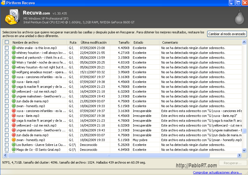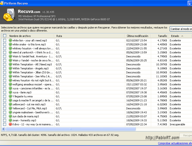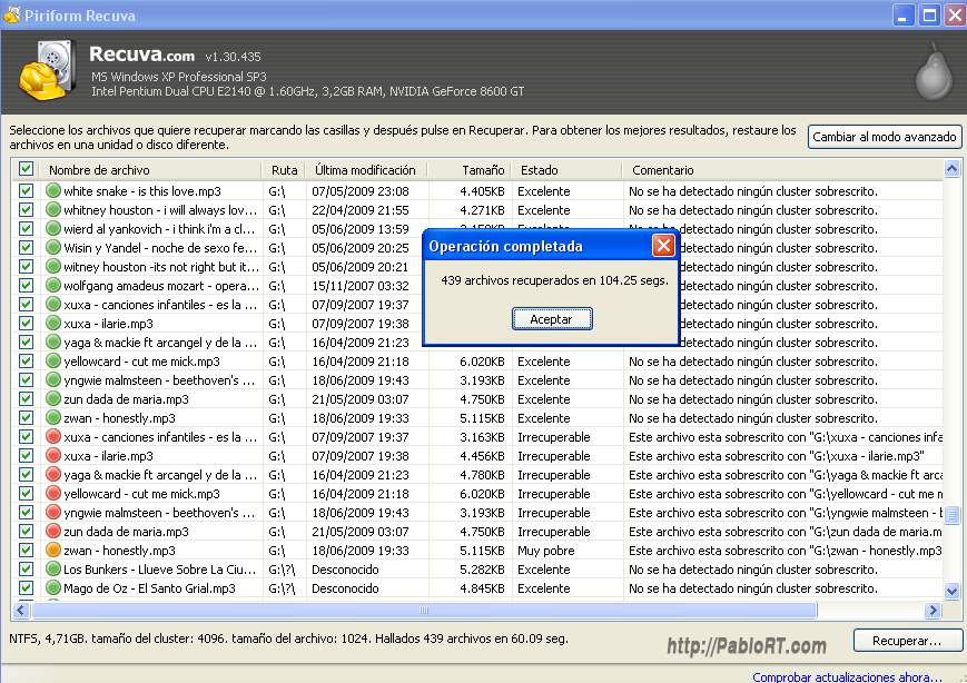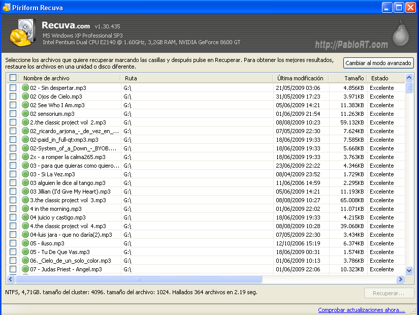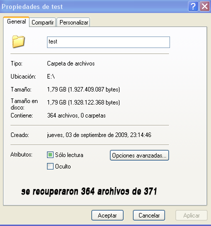 el programa siguió recuperando los archivos, claro no todos intactos pero me sorprende que aún así no tuviera mayores problemas… una vez recuperados los archivos